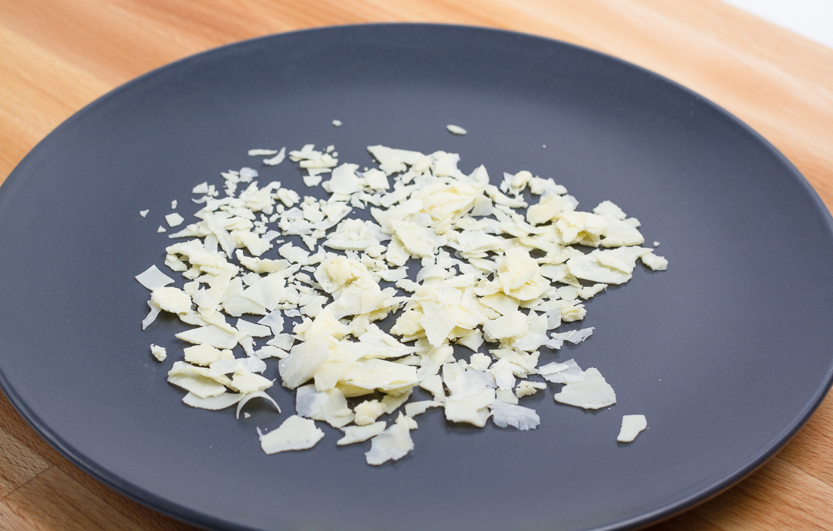 But wait, how did I make my own milk powder? By drying it of course! Pour some milk into a shallow saucer or plate and toss it into the dehydrator. Depending on your dehydrator model you may or may not be able to accomplish this by rearranging or removing racks. In any case, you’ll want to pour the milk very thin, because if it’s too deep only the top will dry and everything underneath will still be wet. Aim to get a nice 2-3mm of milk. As it dries a membrane/skin forms on top, it helps if you move this away to expose more undried areas. I set my Excalibur dehydrator to the “yogurt” setting which is 115℉ for roughly 6 hours.